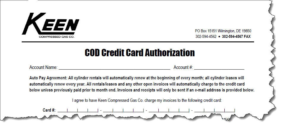 COD Credit Card Authorization Form